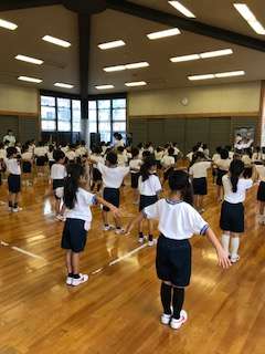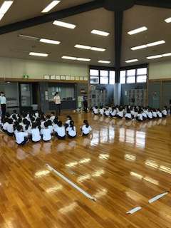 1年生が船橋希望中学校の格技室で運動会の練習をしました。