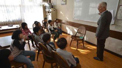 本校職員OBによって運営していただき、土曜日午前中に行われている「寺子屋」。18日この日は二学期最後です。写真は低学年のようす。先生の算数計算の話を一生懸命聞いています。詳しくはこのホームページ上からも、「寺子屋だより」としてごらんになれます。