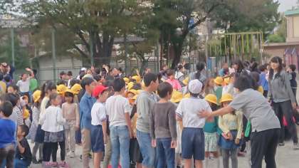 長い名前の文字数を必死に数えながら、学年をこえて呼びかけ合い、楽しく遊びました。