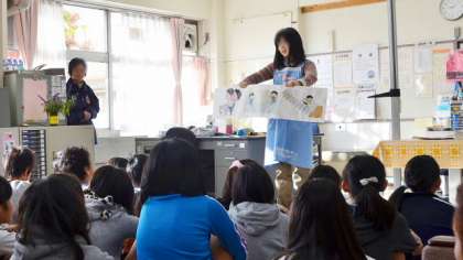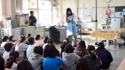各学年体重、身長の計測を行っています。計測の前に養護教諭の健康に関する講話を、図を使ってわかりやすくするための工夫をして行っています。