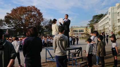 先日の全校朝会で、様々なコンクールに応募した絵の表彰が行われました。