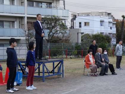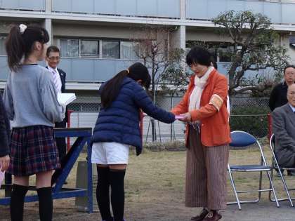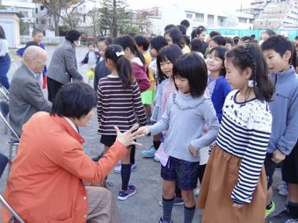 集会では、児童からの感謝状の贈呈、地域の方々との「ピラミッドじゃんけん」ゲームを通して楽しく交流し、感謝の気持ちを伝えることができました。