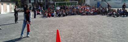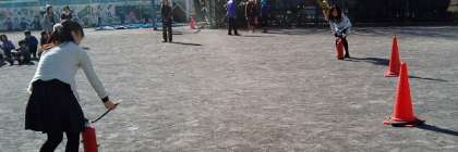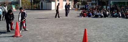 19日(水)、中休み遊び時間に避難訓練をしました。阪神淡路大震災から16年。今日は大地震後、火災が発生したという想定で行いました。休み時間中だったので、子どもたちはとまどったようです。避難後に消火器の使い方について実演を交えて説明しました。その教訓を生かすためにも、このような訓練はしっかり行っていかなければならないと考えています。