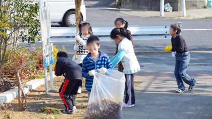 26日(水)の午後、全校児童で「地域美化タイム」に取り組みました。奉仕の精神を養うことを目的に、希望っ子班で一緒に活動しました。天気にも恵まれ、子どもたちは一生懸命ゴミ拾いにがんばりました。結構楽しく活動している様子が、この写真から伝わってきます。