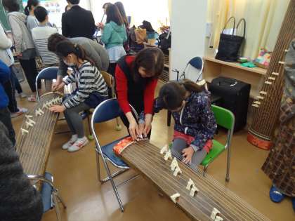 近隣にお住まいの琴・三味線・尺八の先生をお招きし、演奏を聴いたり楽器に触れたりすることで、我が国の伝統音楽の美しさ・おもしろさにふれることができました。