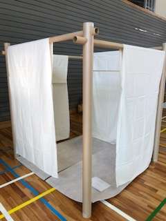 体育館の中を仕切る様子です。