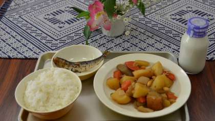 給食でも3日には、丸干しイワシ、豆入り筑前煮のメニューです。