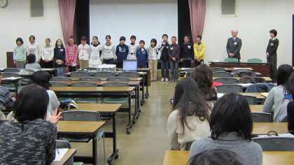 6日(日)、11月に実施した小学生海外派遣の報告会が世田谷区民会館集会室で行われました。本校からも5年生のS君がオーストラリアに行きましたので、私も参加しました。海外派遣団の現地での活動をビデオで見た後、派遣団児童の一言感想の発表がありました。どの子も堂々と意見を述べ、海外派遣に参加した成果と成長ぶりを強く感じました。本校では、来週の月曜朝会(8:25〜45ごろ)で、参加したS君の報告を、写真やビデオを交えてしてもらうことにしています。体育館で行いますので、お時間がありましたらご覧ください。