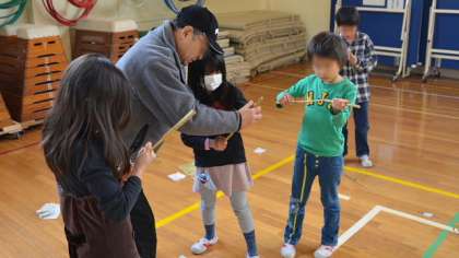 先週に引き続き、1・2年生合同で昔遊び体験をしました。今日は「けん玉」と「空気でっぽうで」す。「かがやく目」の会の皆様に指導していただきました。空気でっぽうは、竹の筒にぬらした紙玉をつめて飛ばすので、大きな音がして楽しそうでした。けん玉の名人もいましたよ。2週にわたりご指導いただいた「かがやく目」の皆さん。ありがとうございました。