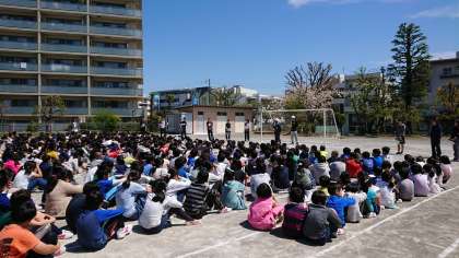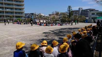 1年生ははじめてなので、上級生の避難の様子を見学しました。