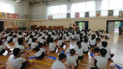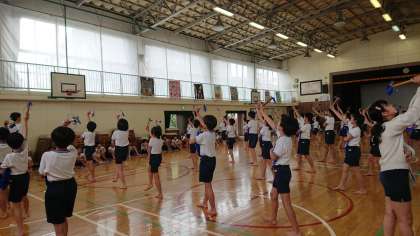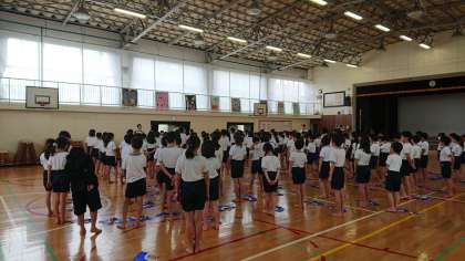 運動会の発表に向け、高学年のみかぐらの取り組みが始まっています。6年生が師匠の立場で、弟子の5年生に細かくアドバイスをします。