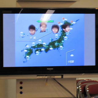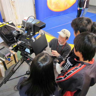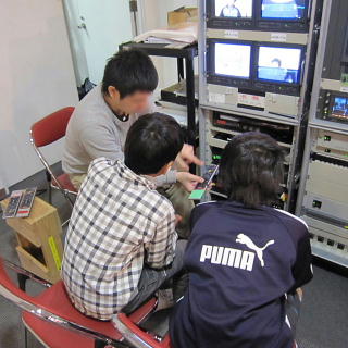 今日の様子を少し紹介します。右はクロマキーを使った不思議な映像。後の2枚は番組作りに真剣に取り組んでいる様子です。