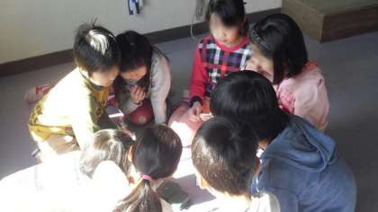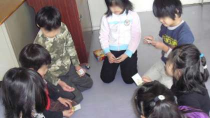 16日、昔の遊び体験の学習で、2年生が1年生に「ぼうずめくり」を教えて遊びました。ゲーム機器を使った遊びもおもしろいと思いますが、昔ながらの人と人が一生に知恵を絞って遊ぶカードゲームの楽しさを味わうことができたと思います。