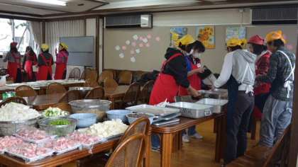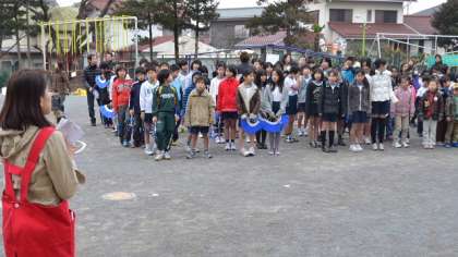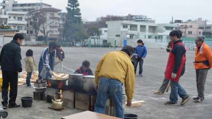 20日(日)、遊び場開放委員会主催の毎年恒例の「餅つき」が校庭で行われました。この日は気温が低く、日差しがない肌寒い天気になりましたが、朝早くから地域・保護者、遊び場開放に携わっている指導員の方々が準備してくださり、受け付け開始の9時にはすっかり準備が整い、予定通り9時半に開会式を行いました。