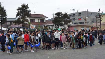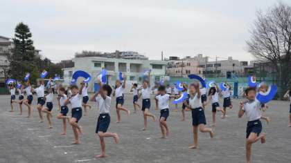 開会式では、お忙しいところを参加いただいた方々の紹介も行いました。開会式の後は5・6年生の「みかぐら」の披露です。本校では、運動会で5・6年生が「みかぐら」を演技種目として6年生が指導者役となって引き継いでいます。その6年生にとっては、皆さんの前で披露する最後の機会になりました。寒い中、半そで半ズボンの体育着で力いっぱい踊りました。