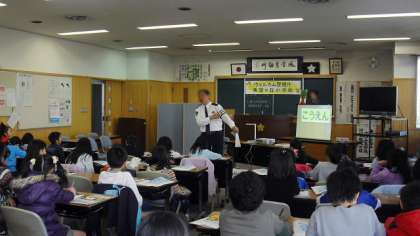 23日午前中、3年生は成城警察署の見学に出かけました。最初に大会議室で、交通安全や防犯について腹話術を交えたお話を聞きました。質問コーナーもあり、みんなで盛んに質問でき、学習意欲満点でした。教室での学習も大切ですが、このように実際に現場に出かけて関係の方から話を聞くことが大事なことがわかります。