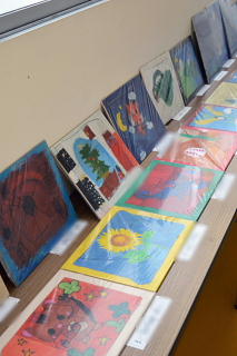 3月になり、さっそく1日から保護者会が始まっています。写真は2階東側の図工室前の廊下に。図工の作品が展示してあります。保護者会で来校した際に、ぜひ足を伸ばして、参観においでください。