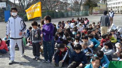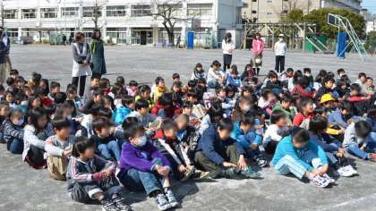 3日昼休み、火災発生の想定で避難訓練を行いました。インフルエンザも下火になったので、本日予定通り実施しました。休み時間の実施で、日は照っていたものの冷たい風がふくなかの訓練だったせいか、締めくくりの訓練としては、子どもたちが騒がしかったのが残念です。ニュージーランドの地震被害があったばかりです。もっと気をひきしめて参加してほしいということを、厳しく指導しました。(校長:千葉)