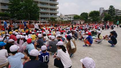 各学年数人ずつで構成されている「希望っ子班」で活動します。上級生は低学年の子達にうまく声をかけながら協力して活動しました。