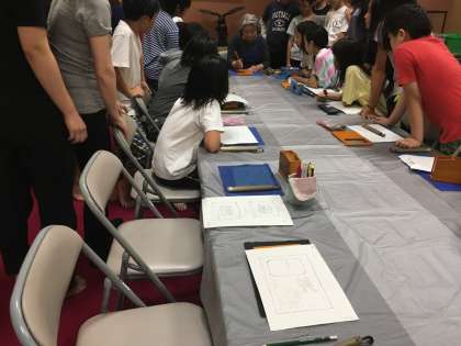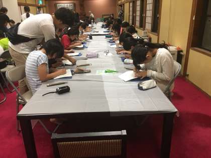 日光彫り体験。みんな真剣。どんな作品が完成するか楽しみです。