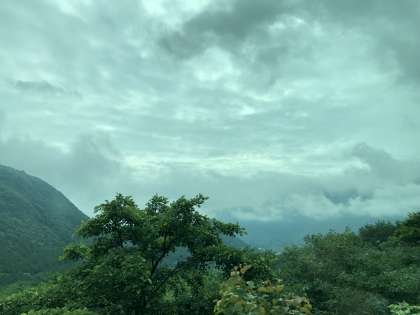 大きく体調を崩す子も出ず、全員で出発です。ただ今いろは坂を走っています。