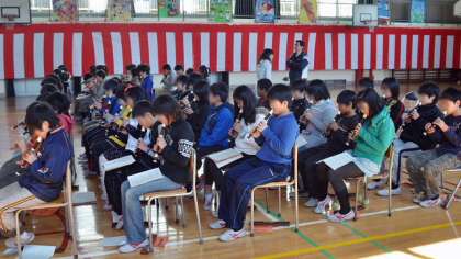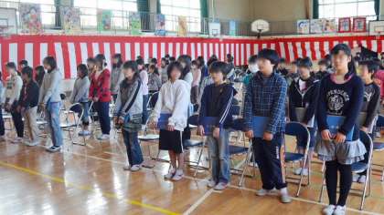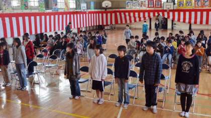 17日(木)、今日は朝から冷え込みが厳しく、学校の周辺の日陰に霜柱が観察されました。そんな中、午前中に4・5・6年生合同の卒業式練習を行いました。全体練習は2回目ですが、寒い中でも卒業する6年生がすばらしい態度で、4・5年生がそれにならって緊張感ある練習となりました。写真からも子どもたちのがんばりと雰囲気が、伝わると思います。