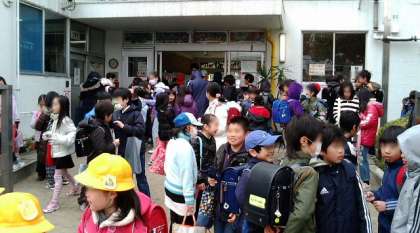24日(木)は修了式。1〜3年生は、今日が今年度最後の登校になります。朝8時10分の開門前にはほとんどの子が登校してきていました。気合いがいつもとはちがうようですね。10分のチャイムと同時に、元気なあいさつをして校内にはいりました。