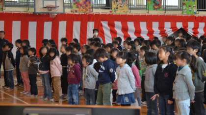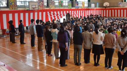 校歌を全員で歌って、修了式の締めくくりは全職員が子どもたちの前に立ち、互いに顔を合わせてあいさつをしました。子どもたちの「1年間ありがとうございます」という気持ちが伝わってきました。