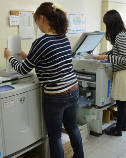 3月31日、今日で22年度も最終日になりました。学校にとっては大晦日のようなもの。さしずめ明日は学校にとってのお正月というところでしょうか? かといってゆっくり休んでいるわけにはいきません。学校のあちらこちらで職員が来年度に向けての準備をしています。年度末になって様々なことがあった22年度ですが、今できることをしっかりと前向きにやっていくことが大事だと思っています。来年度もよろしくお願いします。写真は印刷室で、来年度の教育計画の冊子を印刷製本している様子です。(校長:千葉)