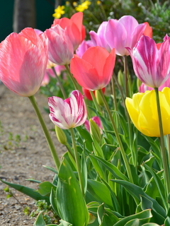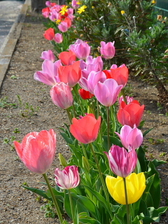 これも11日の午前中に撮った写真です。烏山川緑道からも見えるチューリップです。色とりどりの花を咲かせて競っているようです。通りかかった時に是非ご覧ください。