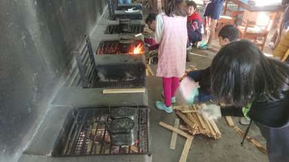 火起こし、下ごしらえ、ご飯、順調に進んでいます。