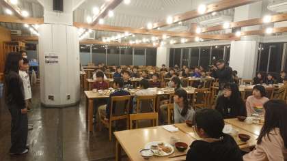2日目の夕食。 山登りでお腹が空いていたようで、みな食欲旺盛です!