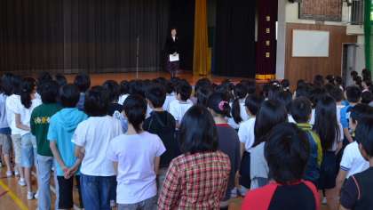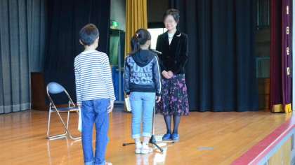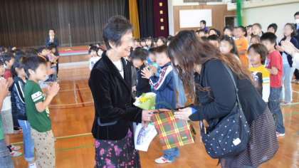 28日朝、体育館で離任式を行いました。昨年度在籍していらっしゃった保健の先生です。2年生代表がお別れと感謝の言葉を述べ、クラス全員で描いたお手紙を渡しました。先生からみんなに言葉をいただき、全員で校歌を歌ってお別れをしました。