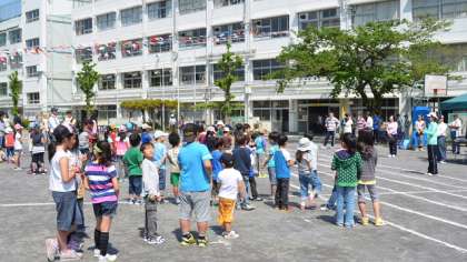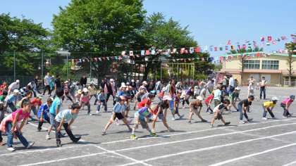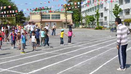 8日(日)、恒例の遊び場開放運営委員会主催の「ミニ運動会」が行われました。昨日の雨で心配されていた天気も一夜明け上々の運動会日和となり、朝早くから遊び場開放に携わっていただいている皆さんが準備をしてくださいました。9時30分の開催時刻には多くの子どもたちと家族の皆さんが集まり、開会式と準備運動で運動会のスタートです。