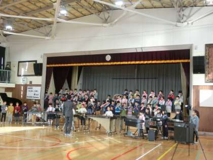 上級生、保護者や地域の方の前で、元気いっぱい、明るく演奏することができました。