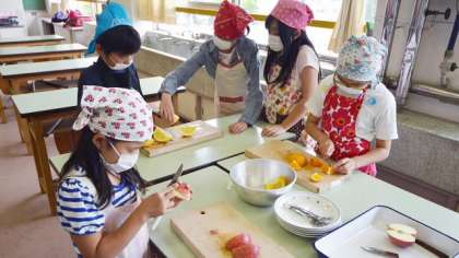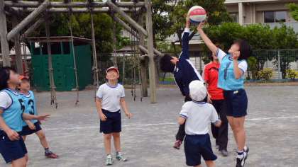 上から、料理・手芸クラブ。果物の皮むきに挑戦です。ちょっとおっかなびっくりでしたが、がんばっていました。むいた果物は・・・もちろん試食しました。真ん中が体育館を使って活動する運動クラブ。バドミントンの試合をしてみました。ラケットを本格的に使うのが初めての子もいましたが、互いに励まし合いながら楽しく活動していました。最初から上手な子はいませんからよいのです。下の写真はバスケットボールクラブです。校庭で活動します。動きの激しいバスケットボール。自分で選んで入っただけあって、やる気満々でコート狭しと走り回っていました。