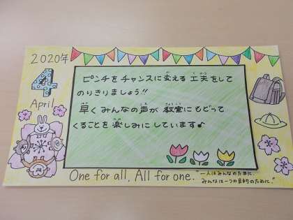 早くみんなの元気な声が教室にもどってくることを楽しみにしています。
