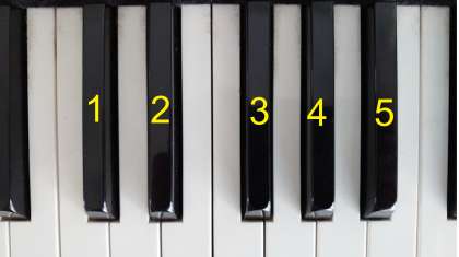 ※ひとつだけ低い5のけんばんを使う曲があります。