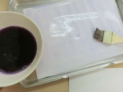 4 液をパレットなどに移し、筆で画用紙全体にぬる。液をかわかし、何度か重ねぬりをする。