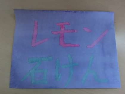 レモン水と石けん水は写真のような色になりましたが、ほかはどのようになるでしょうか?いろいろためしてみてくださいね!