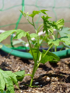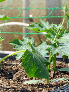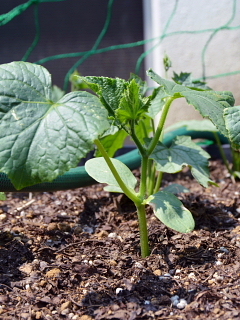 グリーンカーテン用に植えたゴーヤ(ツルレイシ)、キュウリ、ヘチマがぐんぐん育っています。今年の夏は暑くなりそうですから、節電(夏場のエアコンの使用をおさえる)のためにも早く育ってほしいものです。