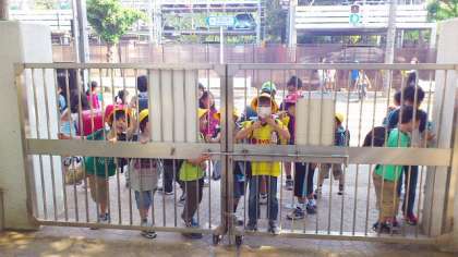 今月は本校で「あいさつ運動」を行っています。毎朝子どもたちが交代で正門前に立って「おはようございます」のあいさつをしています。20日、今週当番だった6年生は今日が最終日。8時5分の開門を前に何人かの子どもたちが問の前で待っています。開門と同時に玄関前に入り、8時10分に校舎内に入ります。そこに当番の子どもたちがあいさつをすることになっています。あいさつ運動2週目をむかえ、子どもたちのあいさつが定着してきたように思います。来週の当番は5年生です。