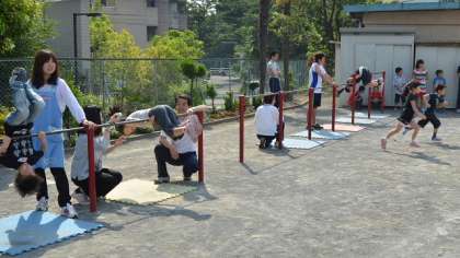 後半は鉄棒リレーです。低学年は「前回りおり」高学年は「逆上がり」を1人ずつ行いバトンタッチをします。3分間で何人できるかに挑戦です。どのクラスも一生懸命、応援の声も自然に出ました。結果は6、5、4年が1、2、3位となり順当でした。さすが高学年。来週は休み時間に検定を受けることができます。