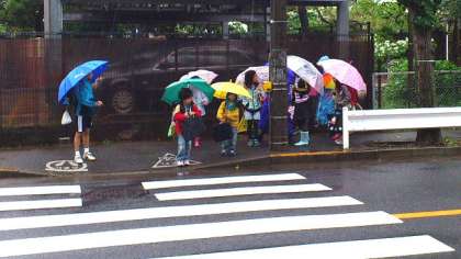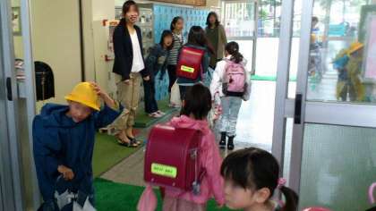 24日は朝の登校時間帯に激しい雨がふり、子どもたちの登校は大変なようすでした。それでも規則を守って元気に登校してくる子どもたち。今週のあいさつ当番の5年生も、今日は玄関の中で出迎えました。