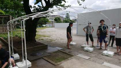 暑い日が続いています。暑さ対策として、校庭にミストを出す装置を設置しました。通常授業が始まると校庭での活動も増えます。熱中症に気を付けて過ごしていきます。