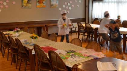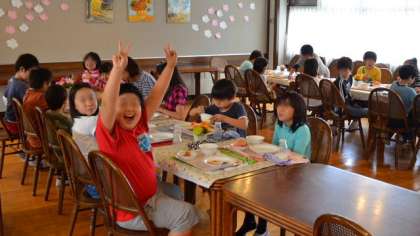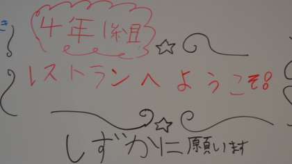 27日、今日は4年1組がランチルームで給食をとりました。4時間目が終わってすぐに給食当番がいち早くランチルームに来て準備を始めました。楽しそうな声が聞こえたので行ってみると、照明が電球色のダウンライトしか点灯していなかったので、どうしたのか聞いたところ・・・「節電にもなるし、なんとなくレストランみたいでしょう?」という答え。それじゃあということで、とっておきの造花も使ってテーブルセッティングしてみたら?と声をかけたところ大喜びで準備して、後から来るみんなを「レストランへようこそ」と言ってむかえていました。ホワイトボードにもごらんのようなメッセージが。みんな楽しく美味しい食事ができました。子どもの感性ってすてきですね。校長:千葉