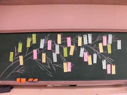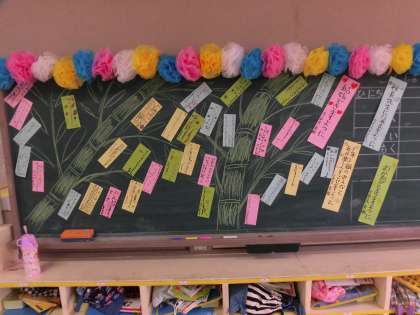 各クラスで、願い事を書いた短冊を後ろの黒板に飾りました。