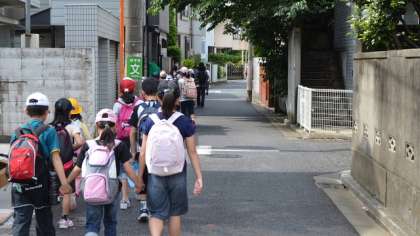 3日は全校遠足を実施しました。1週間前に予定していた遠足でしたが、天候不順のためこの日に延期となったものです。空は見事に晴れ渡りました。ところが天気がよすぎて気温が高いのが心配です。砧公園まで歩いて行くので途中ばててしまわないか心配です。