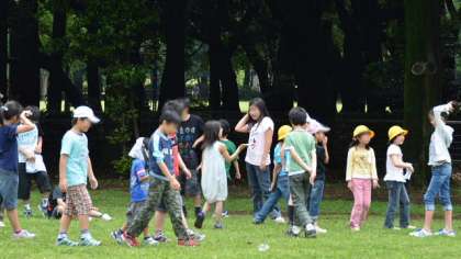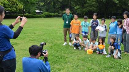 到着後、班ごとに記念撮影。その後担当教諭の注意を聞き、さあいよいよ午前中は希望っ子班ごとでお楽しみの遊び時間です。