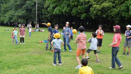 各班で計画してきた遊びを楽しみます。広い芝生の上で思う存分遊びました。高学年が低学年をいたわりながら、中学年は協力してあまり文句もいわずに遊んでいたのに感心しました。
